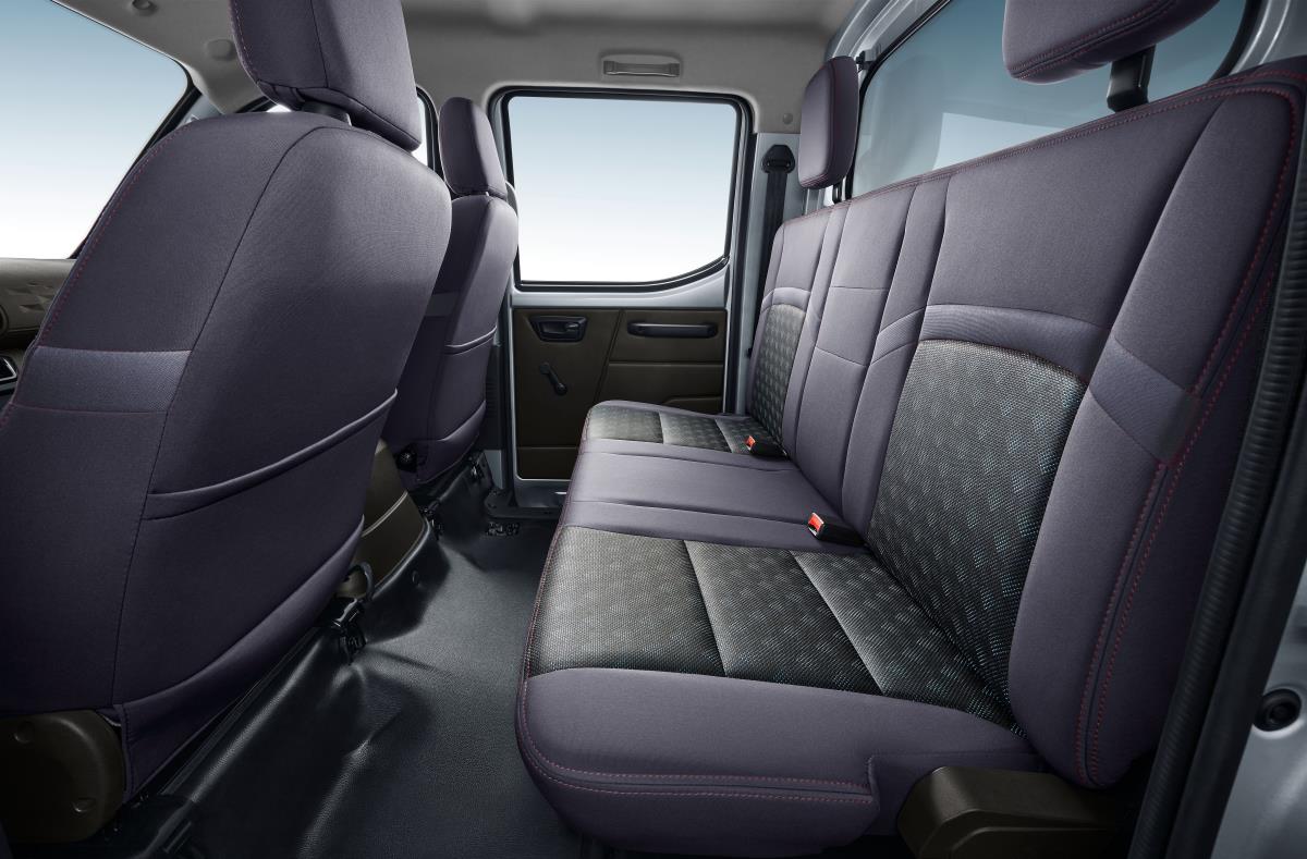 悬架采用6片钢板弹簧设计,钢板厚度达59.5mm,通过70万次疲劳试验,承载能力提升30%,同时钢板弹簧悬架采用上置式设计,置于后桥壳之上,离地间隙提高,通过性能更好。ABS/EBD安全控制系统,轻松操控,稳定如初,让驾驶更安全